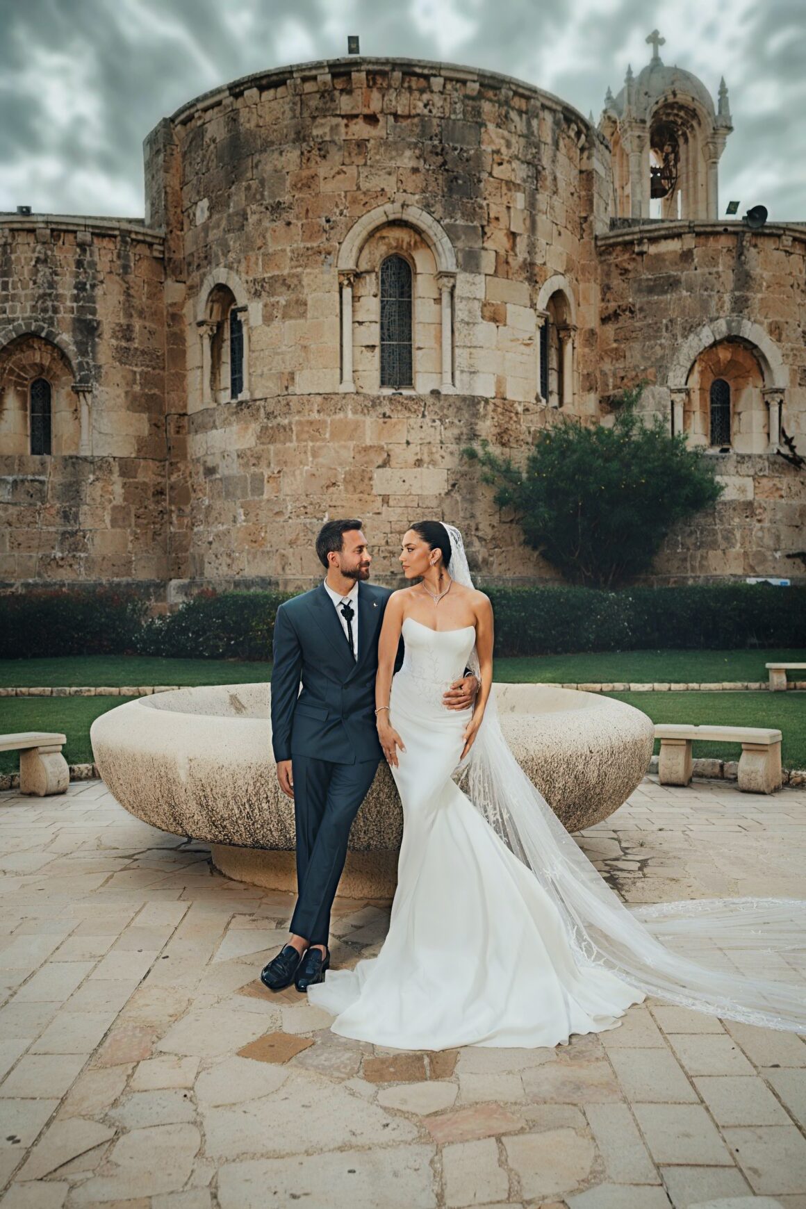 وإذا كانت ستيفاني قد اختارت أن تحكي حبّها عبر ثوبها، فإنّ العريس لم يكن بعيدًا عن هذا السرد. ببدلة مصممة خصيصًا من دار جورج حبيقة، اختار الأزرق الكحلي لونًا لقصّته، في انعكاس لعمق البحر وغموضه. ربطة عنق خارجة عن المألوف، مستوحاة من حبال الموانئ، أضافت بُعدًا بصريًا لرحلةٍ يشتركان فيها، ليس فقط على اليابسة، بل تحت الماء أيضًا.