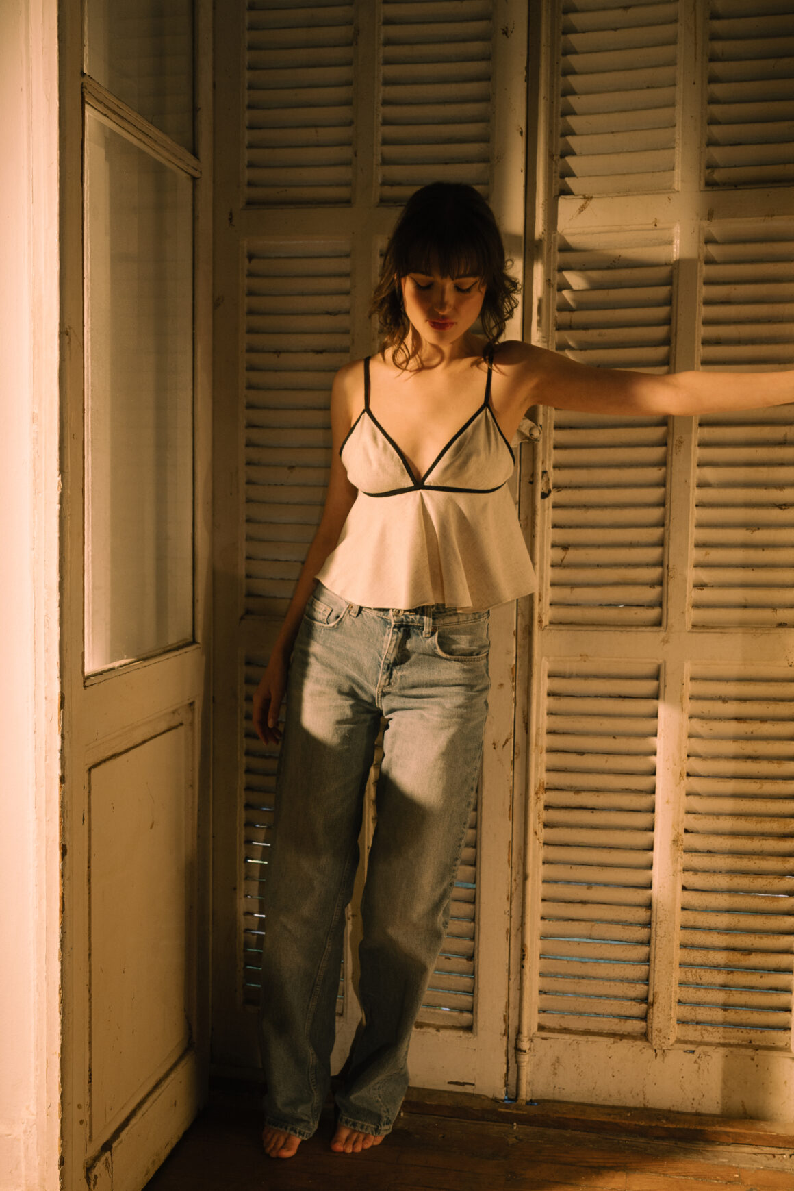 اعتمدت التشكيلة على خطوط انسيابية تتناغم مع الجسد، وأقمشة خفيفة اختيرت بعناية لتمنح المرأة راحة تامة دون أن تفرّط في أنوثتها. الألوان جاءت مستوحاة من لحظات الغروب الصيفي، ما أضفى على القطع روحًا شاعرية هادئة، عزّزتها خامات كالسّاتان الناعم، والكتان المنسدل، والتريكو الخفيف، لتكون النتيجة تصاميم تجمع بين الرقة الحسية والانسيابية العملية.
