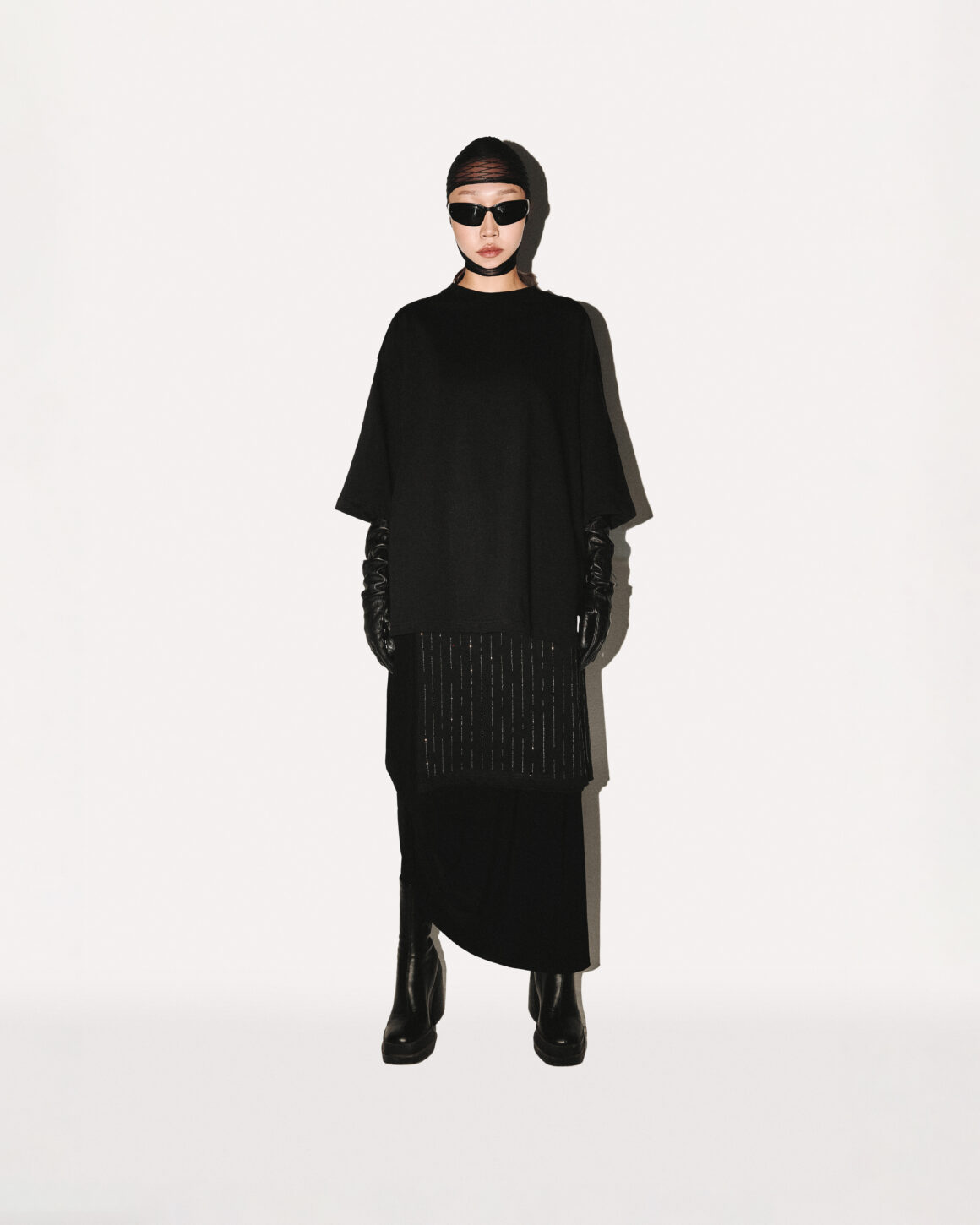 في هذه الجلسة، لم يكن الهدف مجرد إبراز الملابس، بل تقديم رؤية بصرية حديثة تجسّد الطريقة التي يرى بها جيل جديد من المصممين والمواهب العربية الموضة — ليست كمجرد تكرار لما هو سائد، بل كوسيلة للتفكير، للرفض، وللإبداع دون قيداخترنا اللون الأسود كلغة بصرية أساسية، لأنه يعكس بصدق الشعور بالقوة، بالخصوصية، وبالاستقلال عن الصيغ الجاهزة للجمال. القفازات الجلدية، البوت السميك، والنظارات الداكنة لم تكن مجرد إكسسوارات، بل رموز لصوت داخلي يقول: “أنا موجود، ومختلف، ومتصالح مع ذاتي.” هذا الأسلوب الجريء في التصميم والتصوير يعكس تحوّلاً واضحًا في الطريقة التي يتعامل بها المصممون العرب مع الموضة. لم تعد الأزياء أداة لإرضاء الذوق الغربي، بل لغة فنية مستقلة تُبنى على التراث وتُوجه إلى المستقبل. هناك وعي متزايد بأن الهوية العربية قادرة على خلق اتجاهها الخاص، وأن الجمال لا يُقاس فقط بالتطابق مع السائد، بل بالجرأة على الخروج منه.