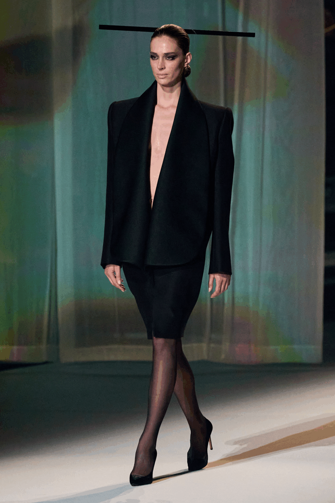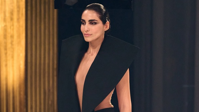 لم تغب الحداثة عن المشهد، فقد استعان المصمم بخطوط تصميمية مستوحاة من المستقبل، تجلّت في الأكتاف الحادة، واللمسات المعدنية، والإكسسوارات المذهلة التي استقرت على الجبهة كرموز كونية، لكنّه في الوقت ذاته حافظ على حضور الكلاسيكية الراقية التي تُشكّل بصمته الخاصة.