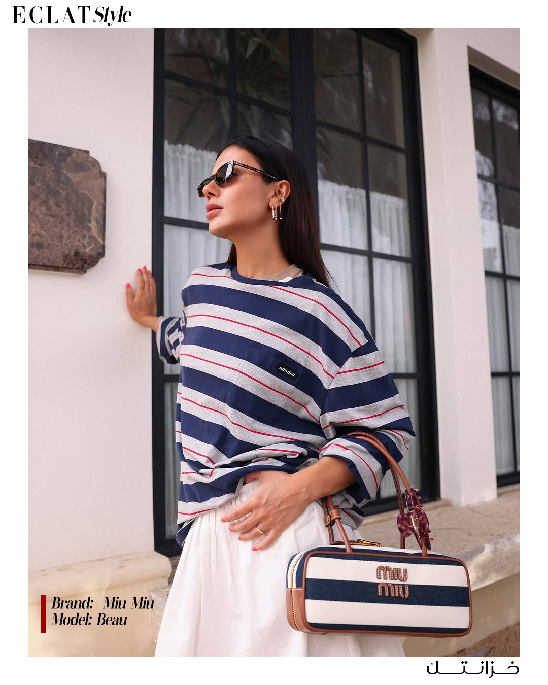 كما أضافت ديما إلى إطلالاتها حقيبة فيندي آي سي يو البيضاء التي تمزج بين الرقي والبساطة، وأظهرت جانبها العصري الجريء مع حقيبة مايكل كورس أستور المزينة بالتفاصيل المعدنية الدقيقة، فيما اختتمت بإطلالة صيفية منعشة بحقيبة ميو ميو بيو المخططة، التي تعكس روح المرح والأناقة في آن واحد.