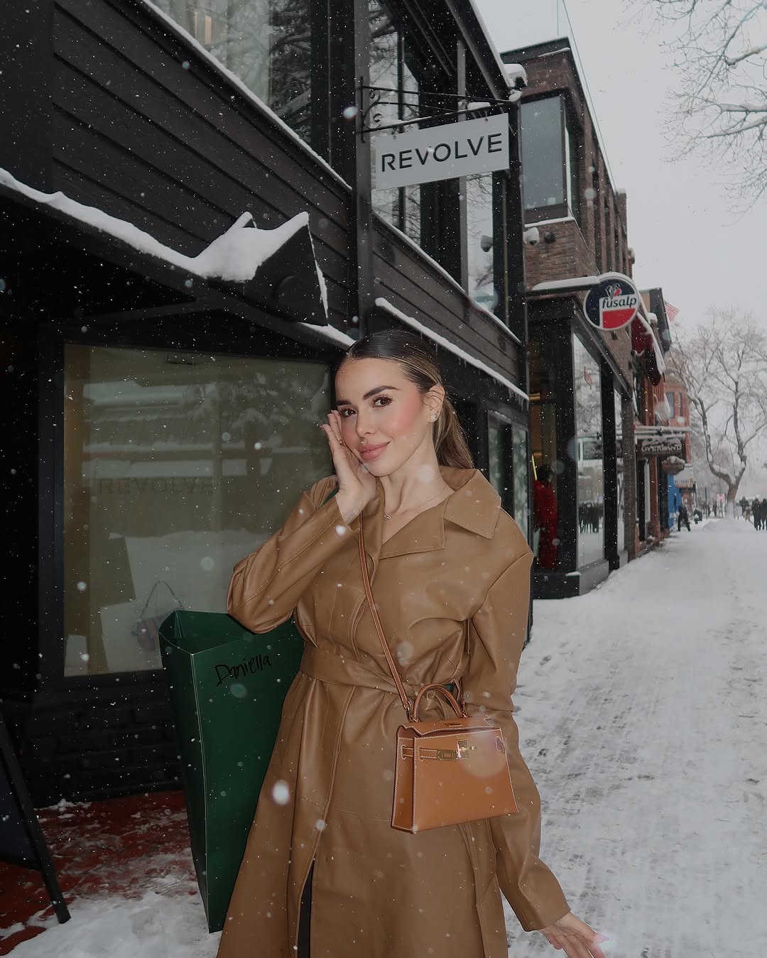 خلال فصل الشتاء، وفي أحد الشوارع المغطاة بالثلوج، اختارت دانييلا معطفًا طويلاً بلون الكاميل، وحرصت على أن تكون حقيبتها من هيرمز بنفس الدرجة اللونية. هذا التناغم بين القطعتين منح الإطلالة إحساسًا بالدفء والانسجام، وأثبت أن الأناقة الحقيقية لا تكتفي بمجاراة الموضة، بل تُبنى على تفاصيل صغيرة متقنة.