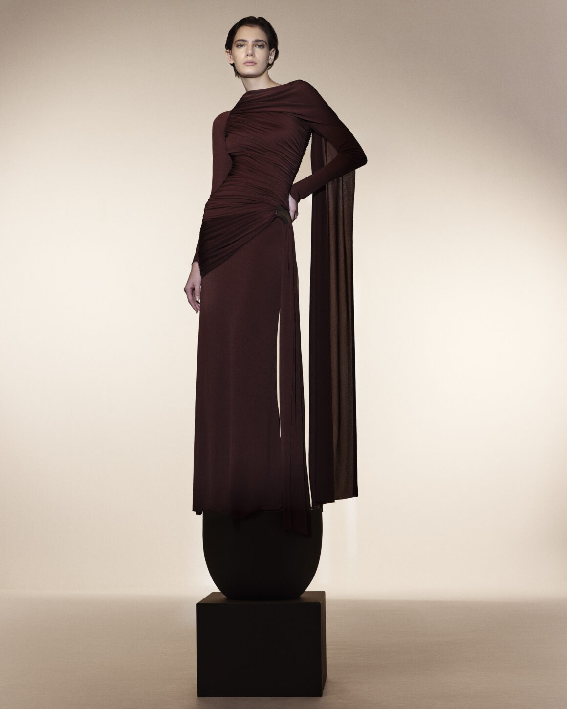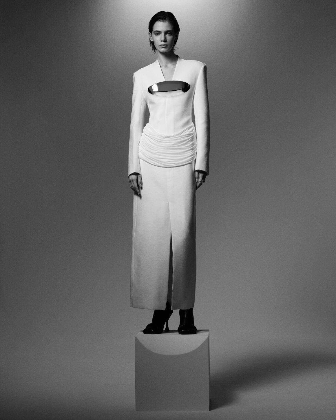 في عالم شاتس، لا تقتصر الأزياء على كونها ثوبًا يُرتدى، بل تتحول المرأة إلى تمثال حيّ يعكس الصمود والتأمل الداخلي. تمامًا كالأعمال الفنية الخالدة، تجسد التصاميم قوة نابعة من الوعي بالذات والسكينة. هذه الفلسفة هي ما تسميه الدار “الأنوثة المنحوتة”؛ أنوثة لا تخضع لقوالب جاهزة أو صور سطحية، بل تنبع من جوهر المرأة العميق. في هذا الإطار تصبح الموضة شكلاً من أشكال الأناقة الوجودية، ليست وسيلة استعراض بل لغة للتواصل مع الذات.