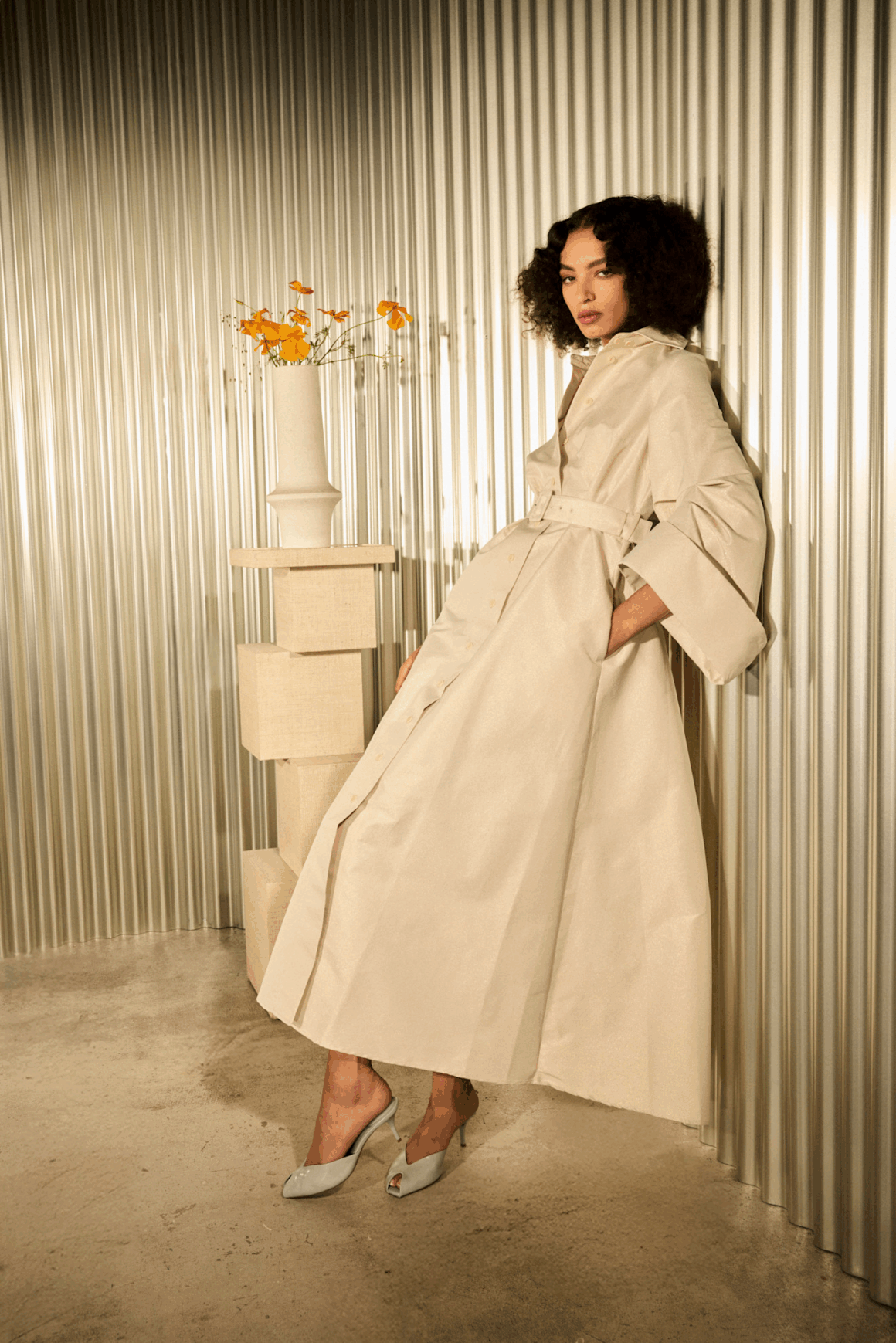 الحزام أيضاً يلعب دوراً محورياً في إبراز الخصر وإضفاء لمسة أنثوية. وضع حزام عريض فوق المعطف يحوله من قطعة فضفاضة إلى إطلالة منحوتة أنيقة، كما أن المصممين حرصوا هذا الموسم على إبراز المعاطف الضخمة بأحزمة جلدية أو معدنية بارزة تواكب صيحات الإكسسوارات الكبيرة. أما من حيث الأسلوب، فإن المعطف الضخم يمنح فرصة للعب على مبدأ الطبقات. يمكن ارتداؤه فوق فستان حريري ناعم لإطلالة مسائية فاخرة، أو فوق طقم رسمي لمظهر عملي أنيق. المهم أن تُترك بعض التفاصيل السفلية ظاهرة، مثل ياقة قميص حريرية، كُم من الدانتيل، أو حافة تنورة أنثوية، لتضيف توازناً بين صلابة المعطف ورقة الإطلالة.