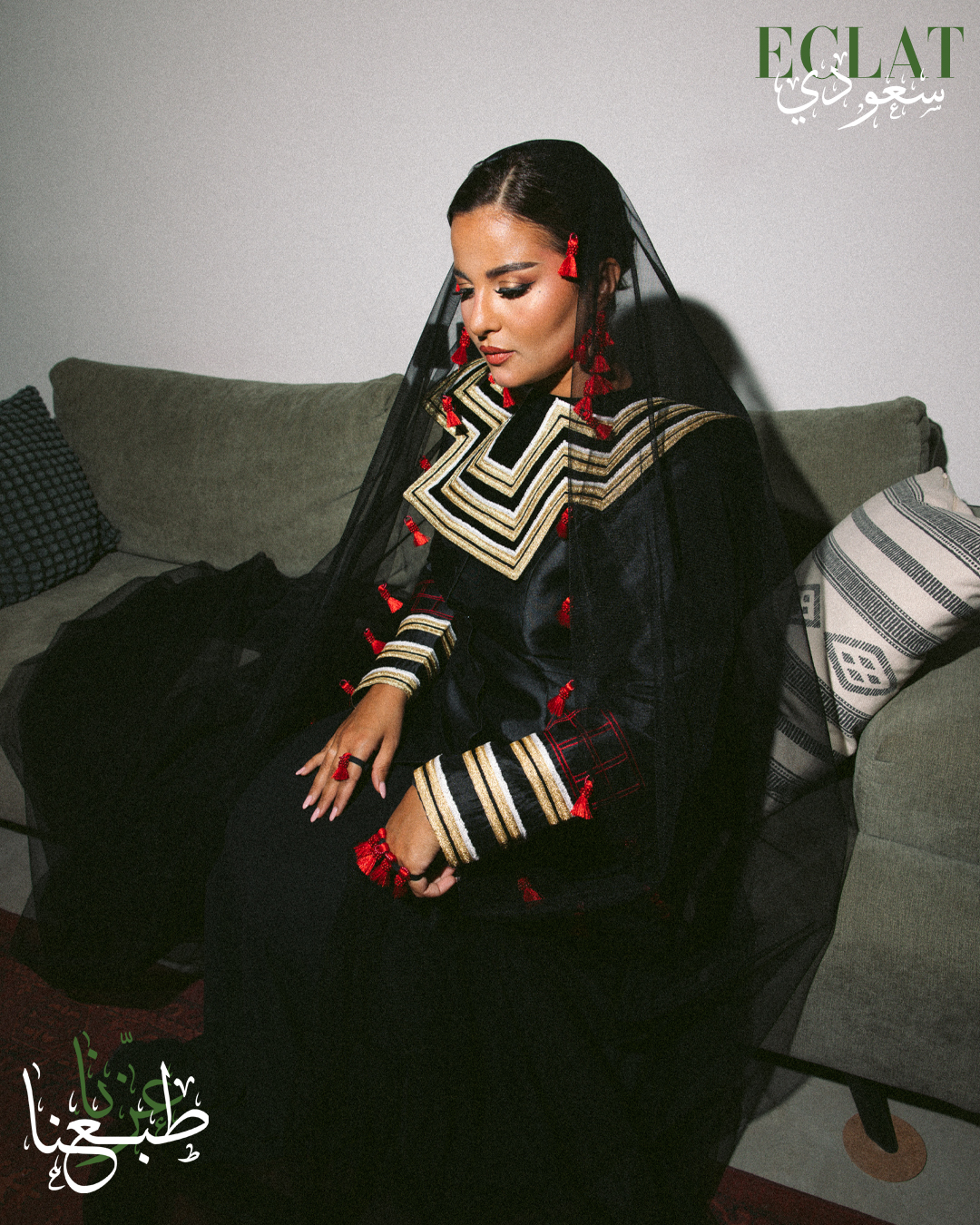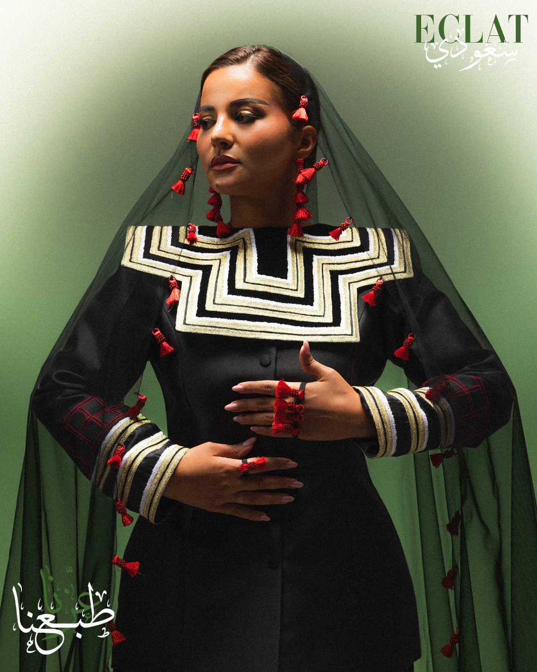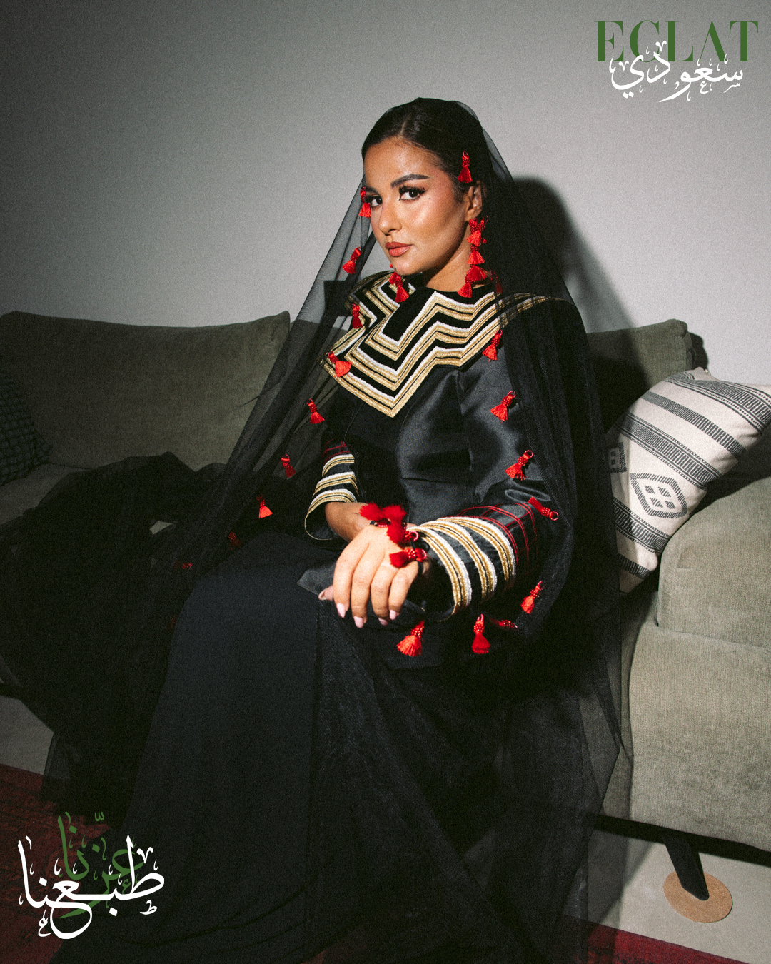 استوحى الغلاف تفاصيله من جذور راسخة في وجدان الوطن، ليُعاد تقديمها بلمسات حديثة تعكس الحاضر وتفتح آفاق المستقبل. فالتراث ليس ماضيًا يُستحضر وحسب، بل هو منبع إلهام يمد الموضة بروح قادرة على التجدد، ويحوّل كل تصميم إلى حكاية تُروى. ومن هنا، تصبح الموضة في السعودية منصة للاحتفاء بالأصالة مع فتح الباب أمام الابتكار، لتكون جسرًا يصل بين الماضي والحاضر والمستقبل.
