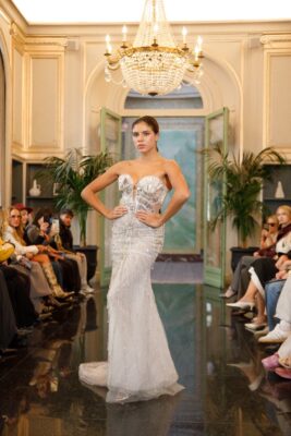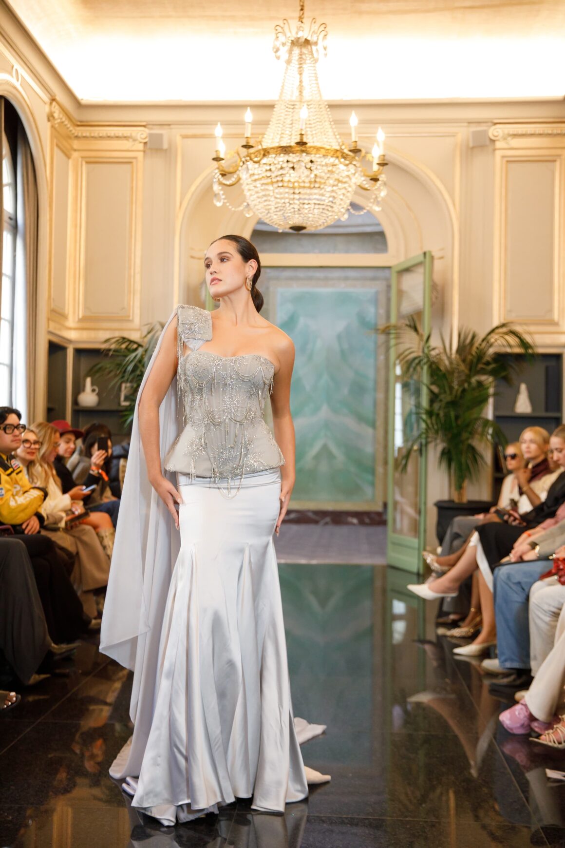 المجموعة التي أُزيح عنها الستار تحت أضواء باريس المتلألئة بدت كأنها قصيدة حالمة تنبض بالرقة والأنوثة. استلهمت المصممة رؤيتها من شعر الأحلام ومن القصص الكلاسيكية للأميرات، فنسجت تصاميم تجمع بين الطابع الملكي واللمسة العصرية في توازن دقيق بين الحشمة والجاذبية، وبين التراث والحداثة. جاءت الفساتين بانسيابية ناعمة، وأقمشة شفافة حالمة، وتفاصيل مطرّزة يدويًا بعناية فائقة، لتروي كل قطعة حكاية أنثى تحمل في طيّاتها القوة والنعومة في آن واحد.